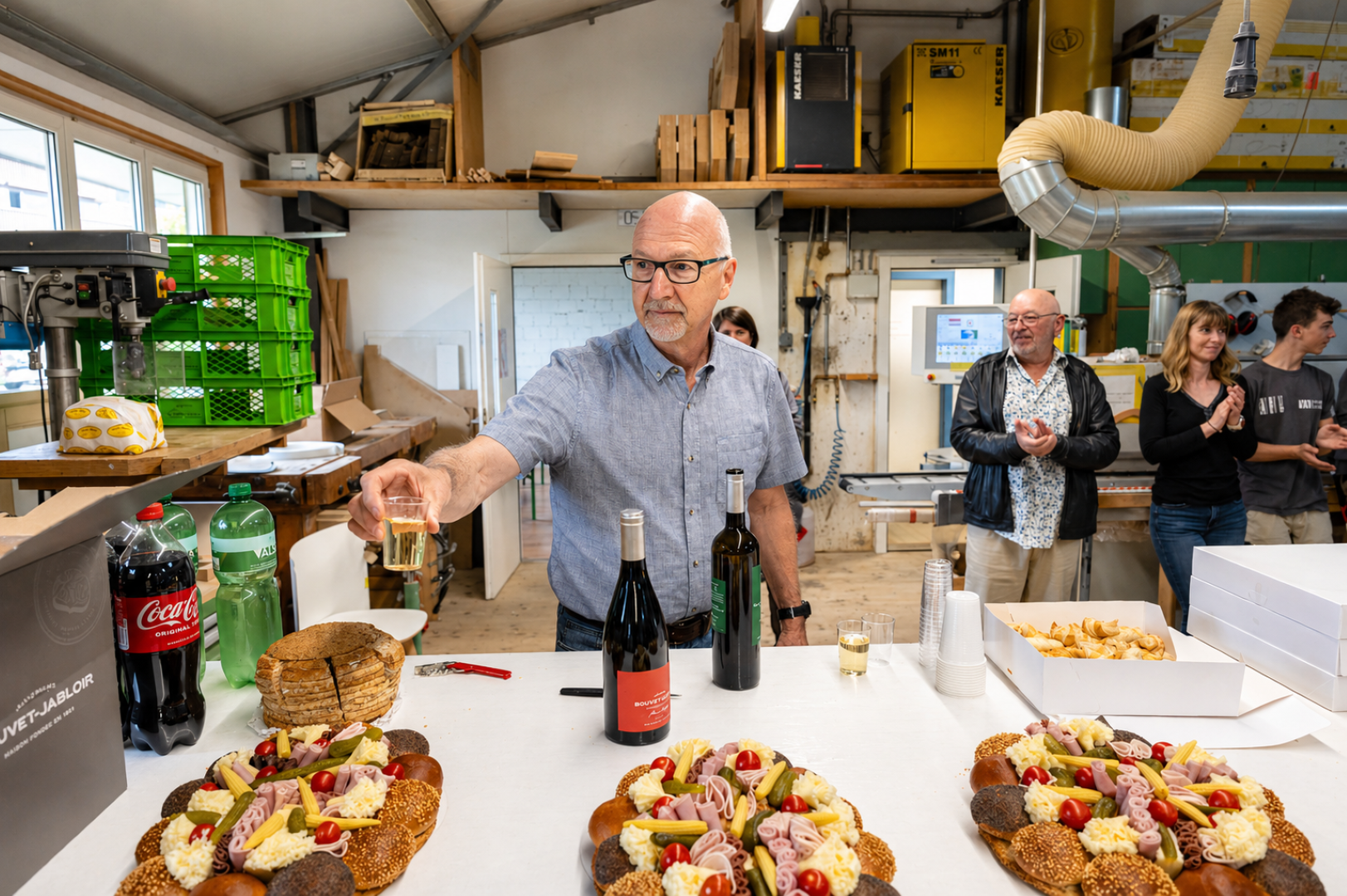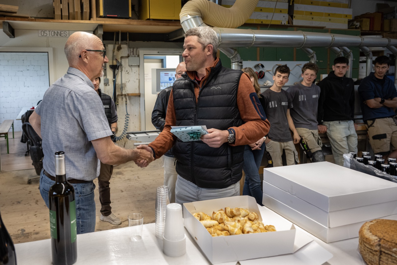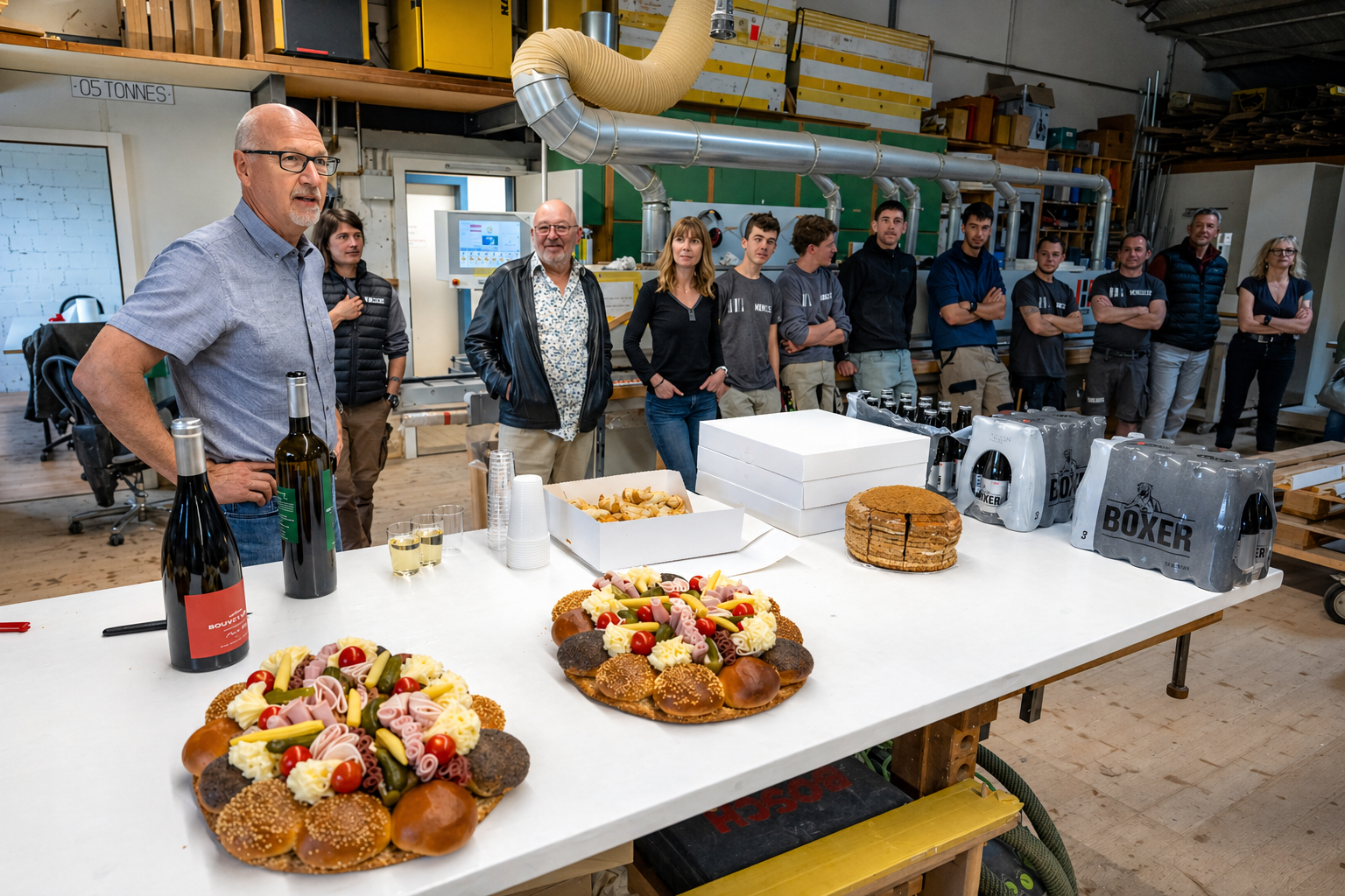 À l’atelier, après le travail, dans une ambiance simple et conviviale, faite de gentillesse, de rires et de bonne humeur : c’est ainsi que Jean-Claude Roy a choisi de célébrer son départ à la retraite à la Menuiserie Vautier. Une manière à son image de tourner la page après… 44 années passées dans l’entreprise, dont une douzaine à sa direction.