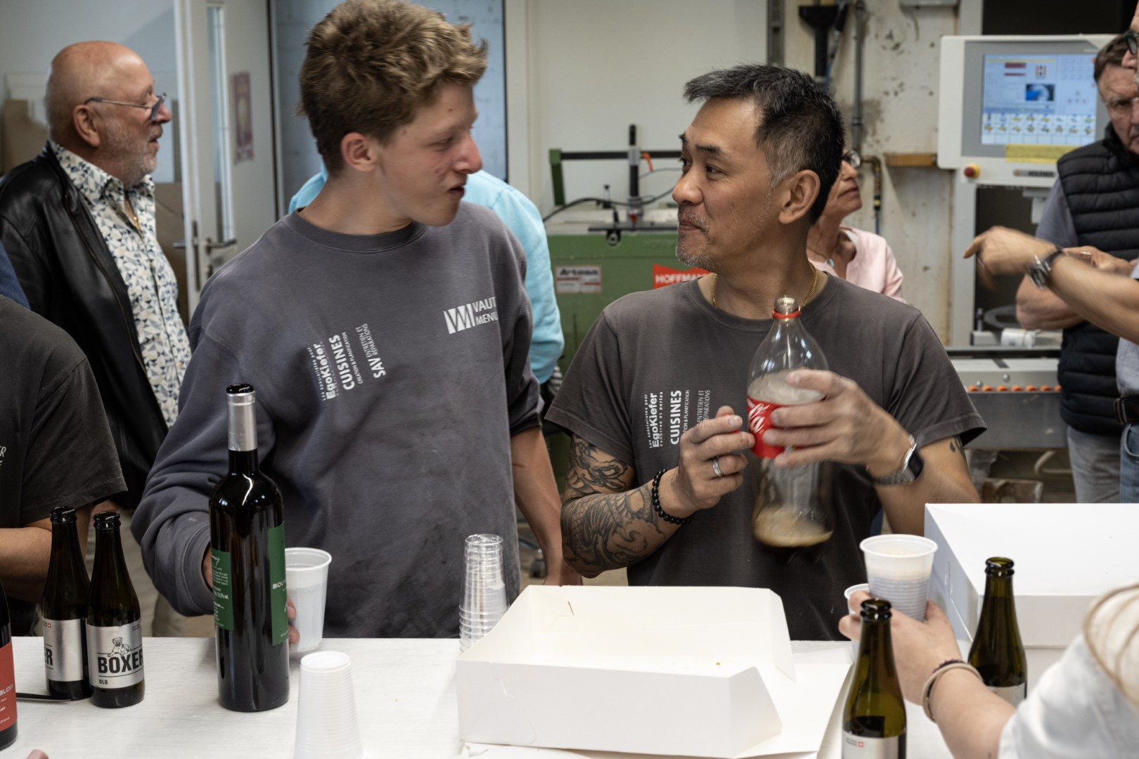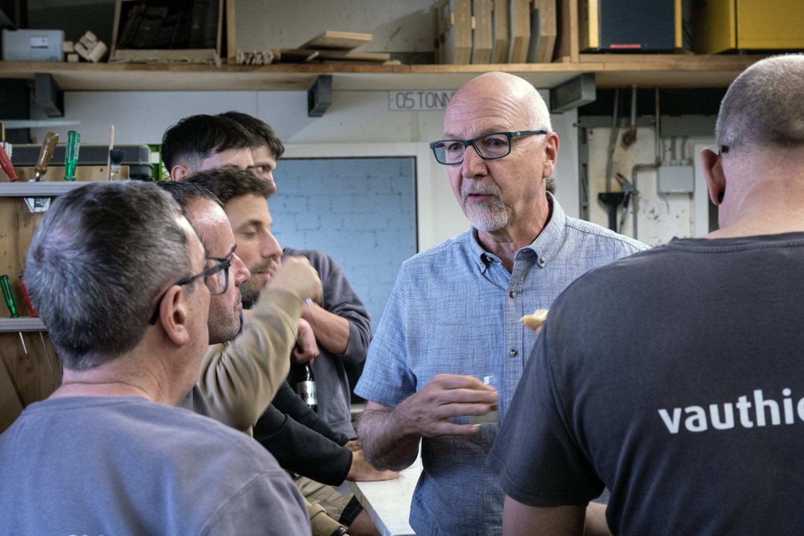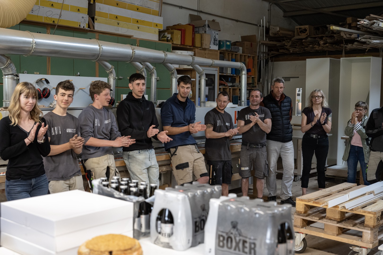 À l’atelier, après le travail, dans une ambiance simple et conviviale, faite de gentillesse, de rires et de bonne humeur : c’est ainsi que Jean-Claude Roy a choisi de célébrer son départ à la retraite à la Menuiserie Vautier. Une manière à son image de tourner la page après… 44 années passées dans l’entreprise, dont une douzaine à sa direction.
